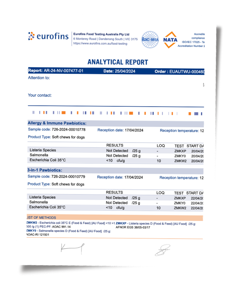 Say goodbye to itches! Dog allergies come in many forms and they all suck equally. Our Allergy & Immune Pawbiotics combines the healing properties of well-known anti-inflammatories such as turmeric, skin-nourishing ingredients such as wild Alaskan salmon oil, and immune-boosting ingredients such as Vitamin C coupled with our Pawbiotic blend of 8 strains specifically chosen for their immune-boosting properties. This supplement may relieve skin itching, support fur growth and prevent severe allergic reactions. Since it is a supplement filled with natural ingredients, and not a medication, Allergy & Immune Pawbiotics can be taken daily and long-term.